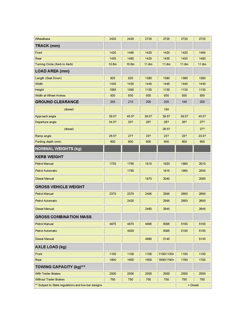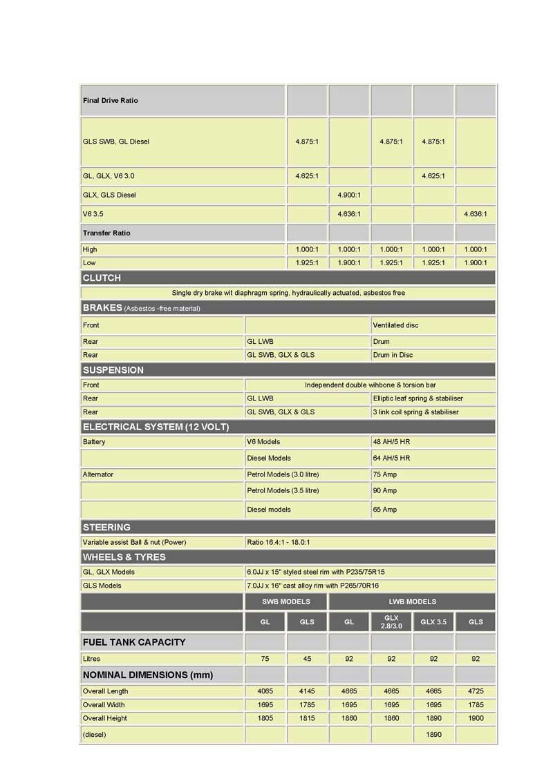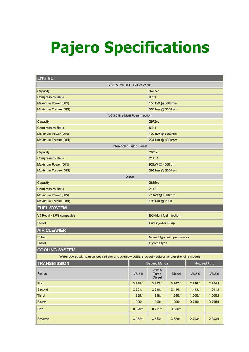 Pajero V6 3.5L / V6 3.0L / 2.8L Diesel Turbo-Inter / 2.8L Diesel Specification