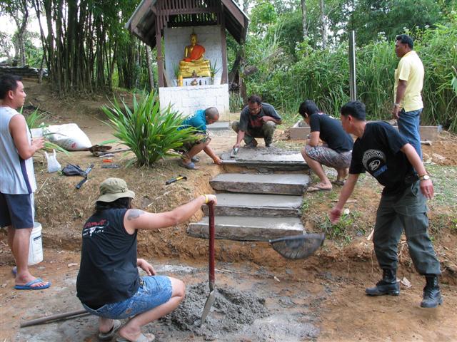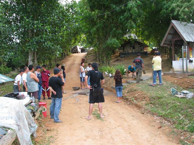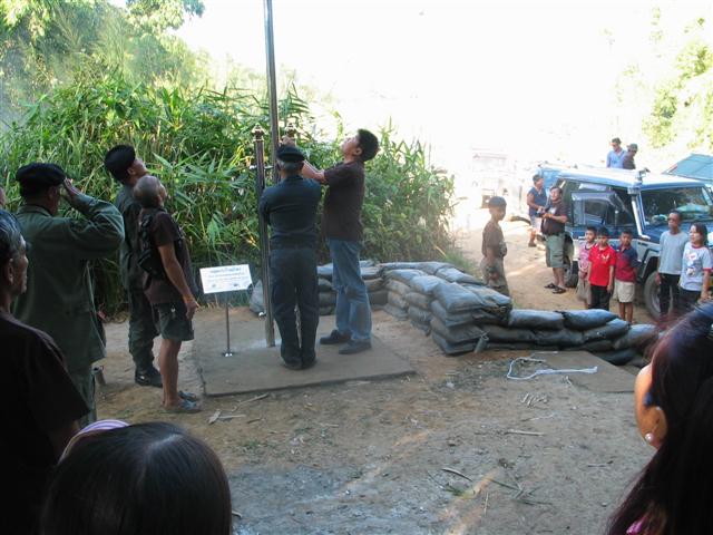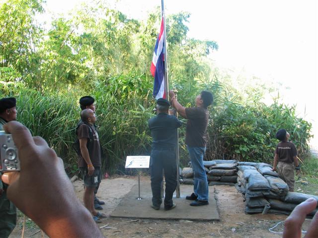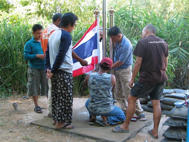 5 ธ.ค.51...ตื่นเช้า 06.09 น. ทานอาหารเช้า และเตรียมอาหารมื้อกลางวัน พร้อมสัมภาระของแต่ละท่าน(ต้องทานกันกลางป่า)เพราะต้องใช้เวลาเดินเท้า 6-7 ชั่วโมง เนื่องจากทำเสาธงครั้งนี้รถยนต์ขึ้นไปไม่ถึงยอดเขา โดยมี ตชด.นำทางและดูแลความปลอดภัยให้ ถึงยอดเขาประมาณ 14.00 น. ลงมือสร้างเสาธงโดยเพื่อนกลุ่มกระโจมไพร จนเสร็จ หรืออาจทำต่อวันที่ 6 ธ.ค. 51 ต่อด้วย นอนพักบนยอดเขา.....