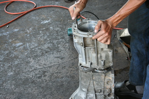 1.นำเกียร์มารื้อออกทั้งหมดจนเหลือแต่เสื้อเกียร์