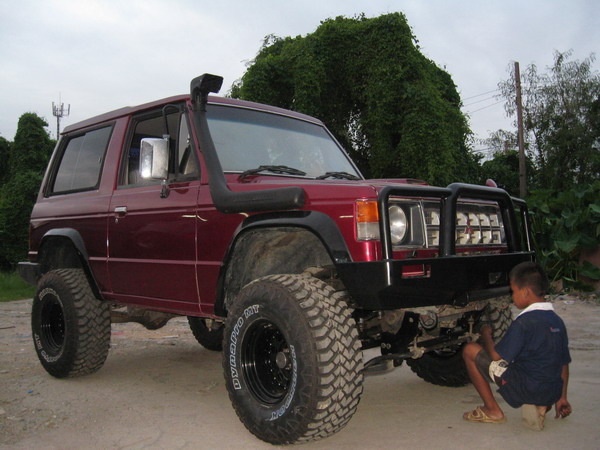 หรือ ยกตัวถัง 3"-5" แล้วแต่ความชอบ ราคาก็หลักพันปลาย ๆ ถึงหลักหมื่นต้น ๆ (ไม่ต้องยุ่งกับช่วงล่าง ใช้ของเดิมได้ แต่เมื่อยางใหญ่ขึ้น อาจต้องใช้โช๊ค 4 ตัวให้หนึบขึ้น)