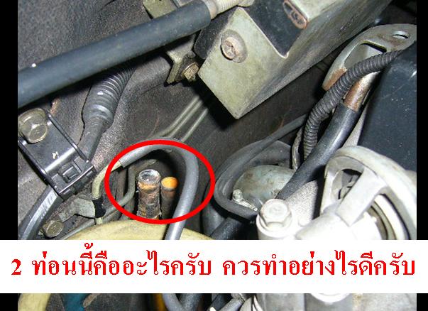 เป็นท่อของ Heater ในรถครับ เป็นท่อน้ำเข้าและออกอย่างละท่อ ดูจากรูปคงเป็นโชกุน V6 ช่างถอดท่อออกไปหรือไง หากคิดว่าไม่ใช้ก็ไม่ต้องต่อแต่ควรมีจุกยางอุด แต่ก่อนอุดควรเอาลมเป่าโดยเปิดวาล์วในรถเพื่อไล่น้ำที่เหลือออกจากตู้ให้หมดแล้วอุดครับ หากต้องการให้ระบบสมบูรณ์ก็ต่อแบบเดิม และน้ำยากันสนิมหม้อน้ำจำเป็นมากนะครับเพื่อป้องกันการเกิดสนิมในระบบ เป็นน้ำยาของมิตซูหรือโตโยต้าก็ได้ ขายเป็นแกลลอนผสมเสร็จมาแล้วจากบริษัท (โตโยต้าหาง่ายตามร้านอะไหล่ใหญ่ ๆ หน่อย สีชมพูเข้มออกแดง)