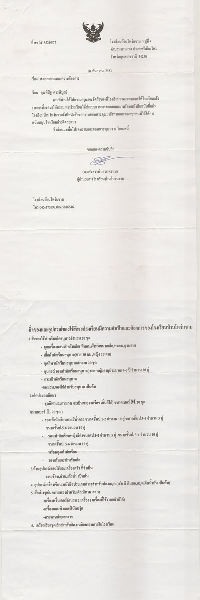 สิ่งของและอุปกรณ์ของใช้ที่ทางโรงเรียนมีความจำเป็นและต้องการของโรงเรียนบ้านโหง่นขาม ในครั้งนี้ครับ