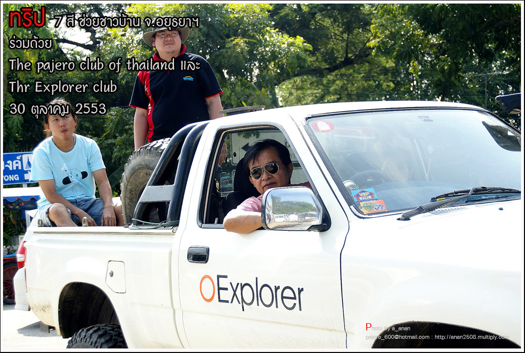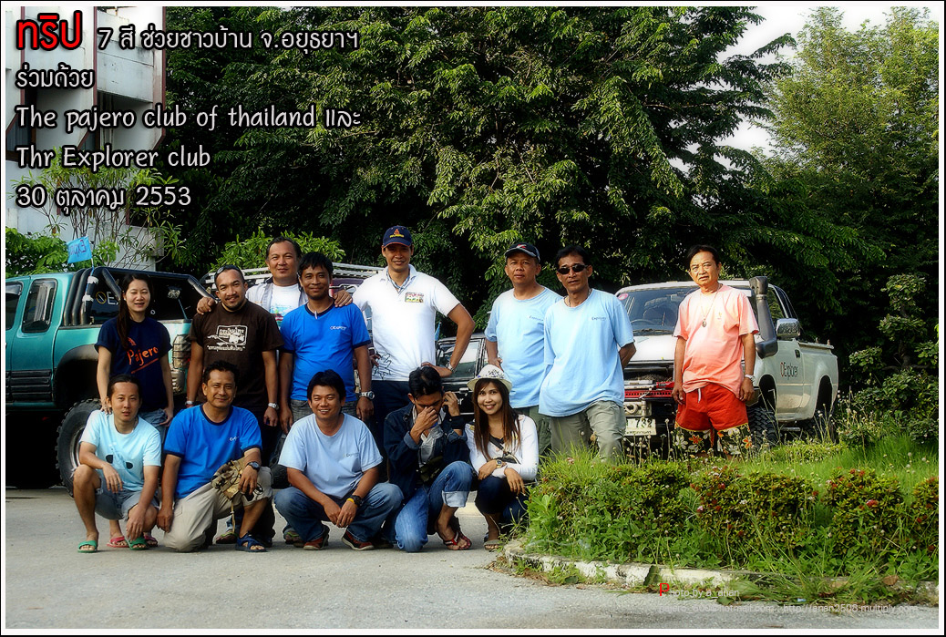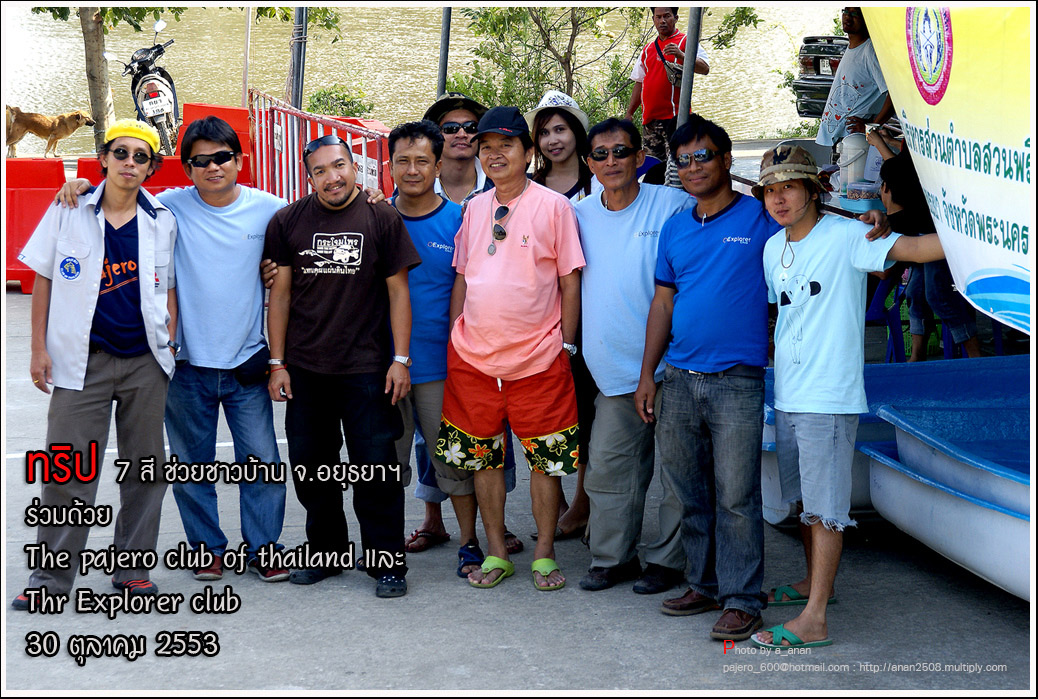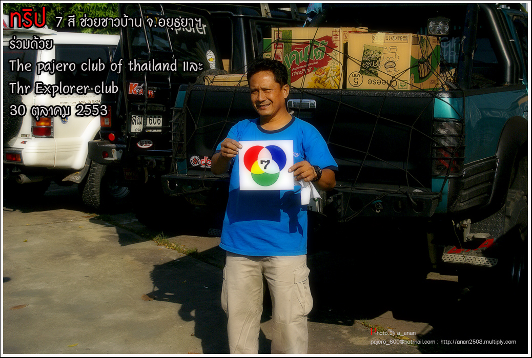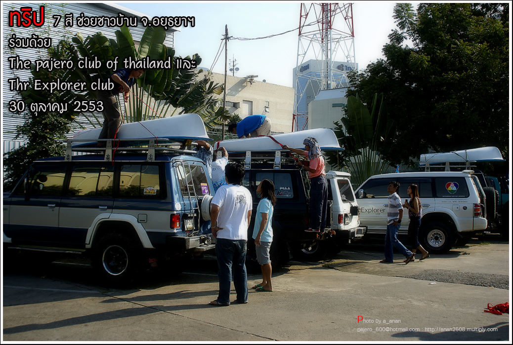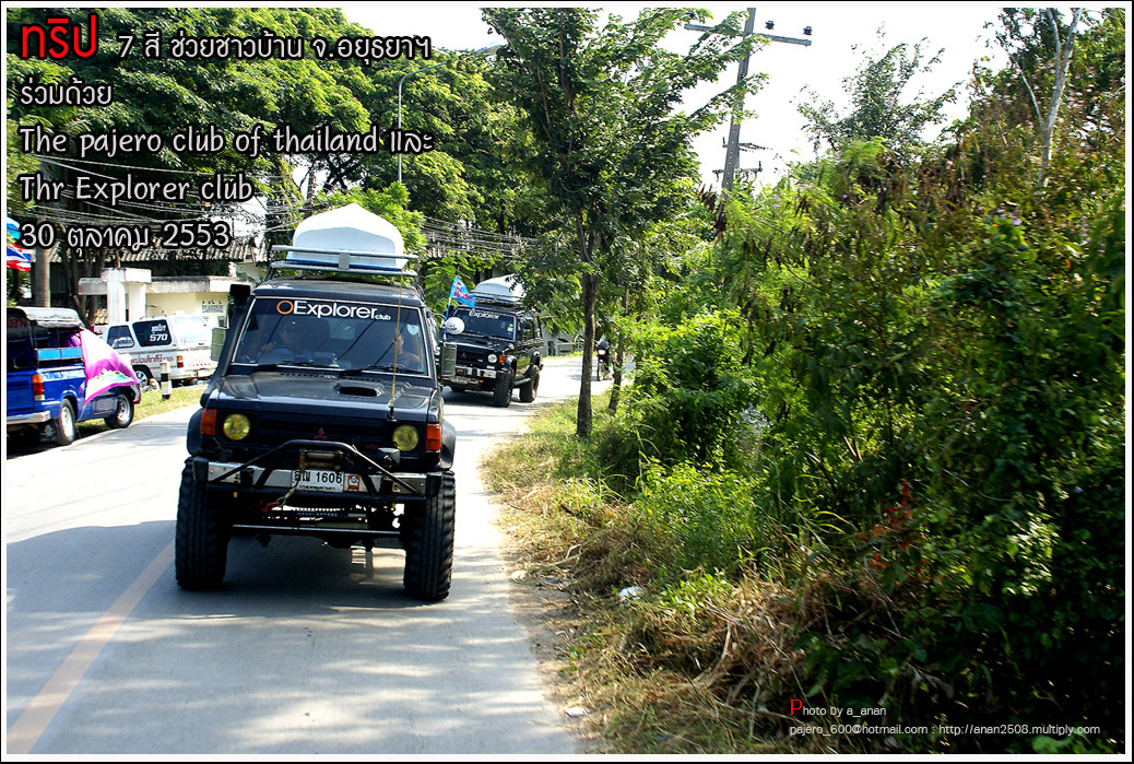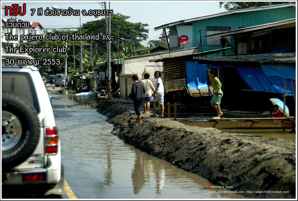 เป็นความร่วมมือของภาคหน่วยงาน ทั้งราชการ เอกชน องค์กรต่างๆ และทางกลุ่ม The pajero club of thailand และThe Explorer club ได้มีโอกาสเดินทางร่วมขบวน เพื่อเข้าช่วยเหลือ แจกจ่ายถุงยังชีพ แก่พี่น้อง ชาวจังหวัด พระนครศรีอยุธยา ด้วยขบวนรถของทางช่องเจ็ด ที่มีสัมภาระจำเป็นแก่ผู้ประสบภัย จำนวน สองคันรถบรรทุก กับขบวนออฟโรด อีกจำนวน 14 คัน เพื่อให้สามารถเข้าถึงพื้นที่ให้ได้มากที่สุด