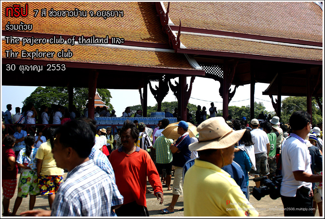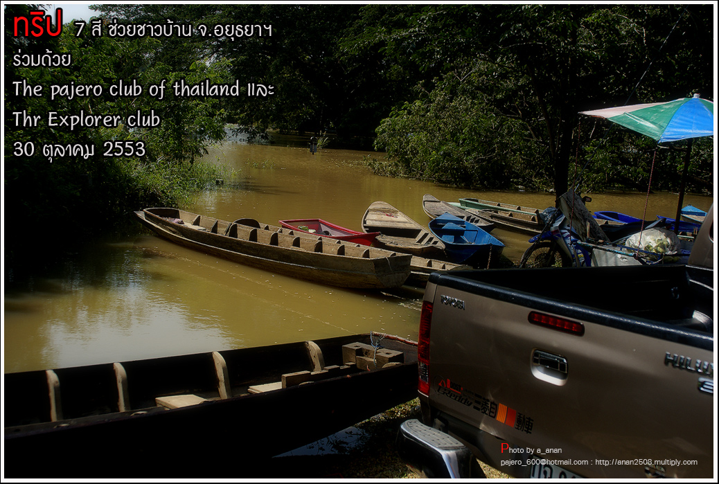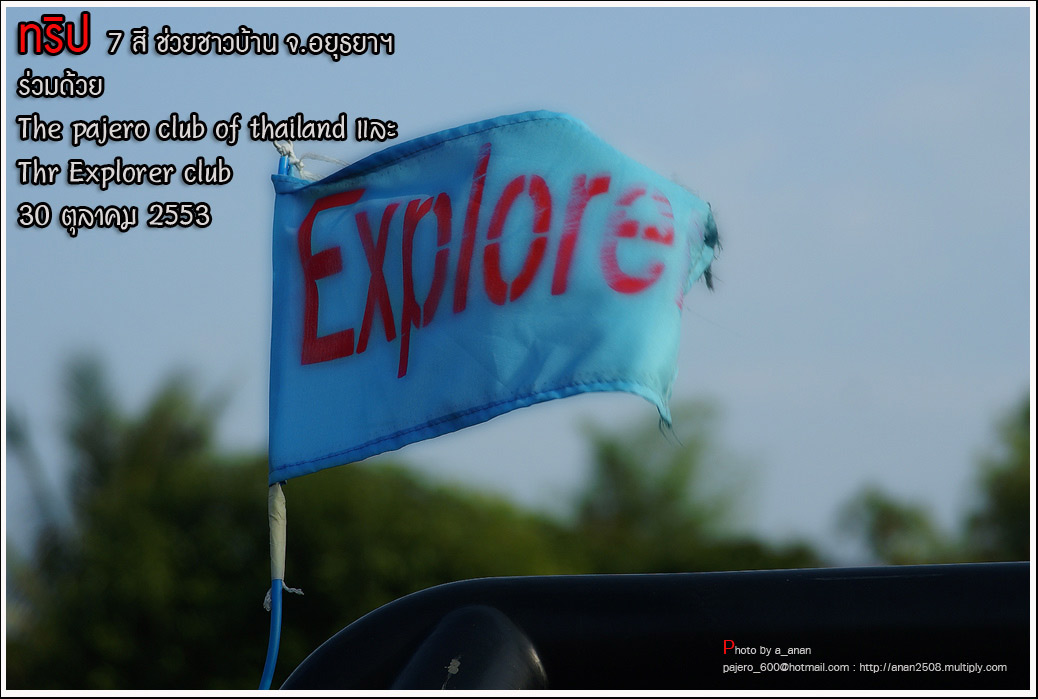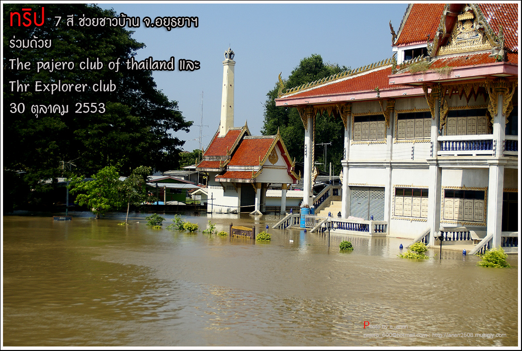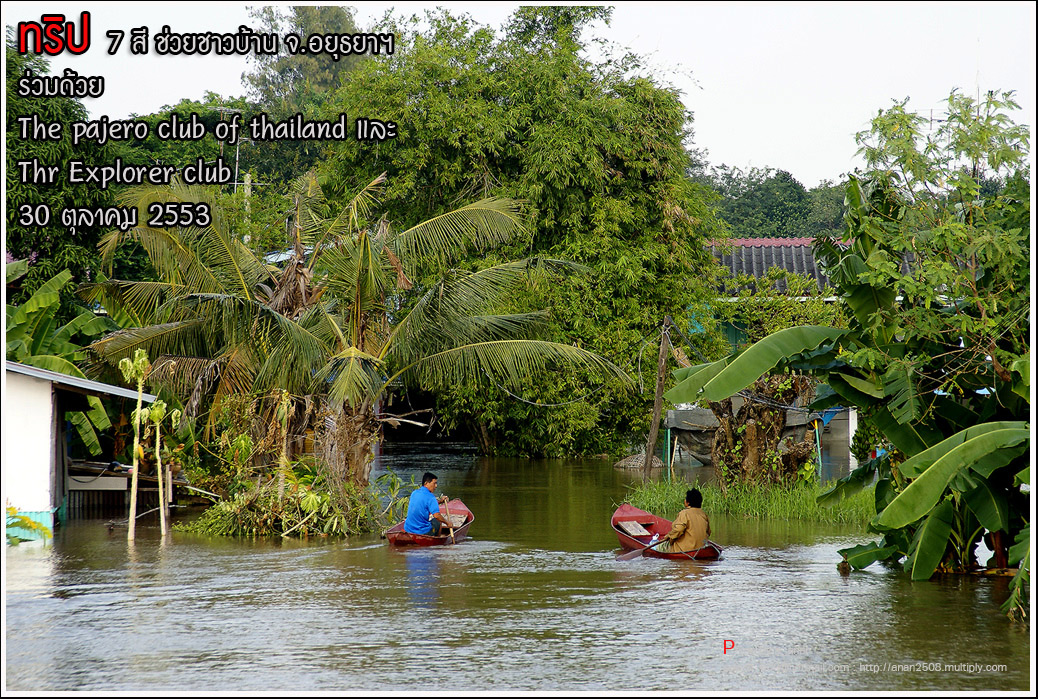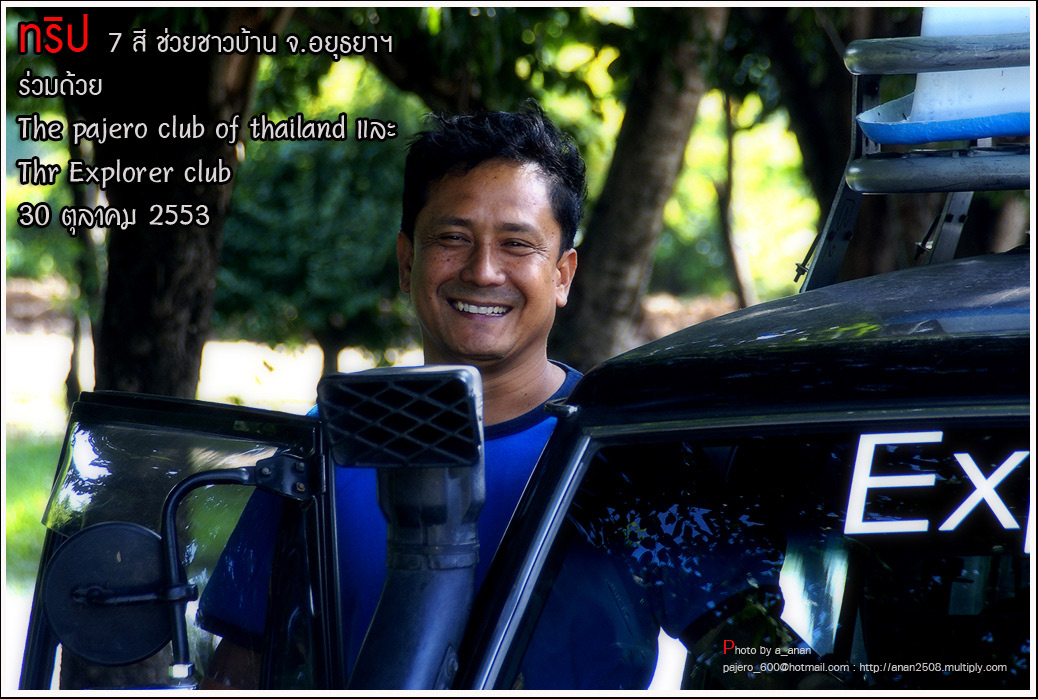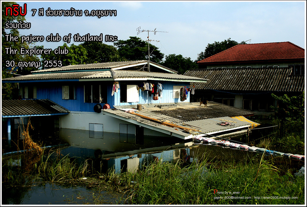 เป็นความร่วมมือของภาคหน่วยงาน ทั้งราชการ เอกชน องค์กรต่างๆ และทางกลุ่ม The pajero club of thailand และThe Explorer club ได้มีโอกาสเดินทางร่วมขบวน เพื่อเข้าช่วยเหลือ แจกจ่ายถุงยังชีพ แก่พี่น้อง ชาวจังหวัด พระนครศรีอยุธยา ด้วยขบวนรถของทางช่องเจ็ด ที่มีสัมภาระจำเป็นแก่ผู้ประสบภัย จำนวน สองคันรถบรรทุก กับขบวนออฟโรด อีกจำนวน 14 คัน เพื่อให้สามารถเข้าถึงพื้นที่ให้ได้มากที่สุด