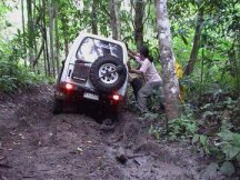 มีการลื่นไถลตกหลุมลึกประมาณ 1 เมตร ในช่วงลงเนินชัน หัวปักลงไปในโคลน ล้อหลังลอยเคว้งอยู่ในอากาศ