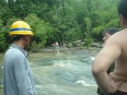 นั้นเพื่อลากเอาสายสลิง ไปยึดกับหินก้อนใหญ่ อีกฝั่งน้ำเพื่อมายึดกับ