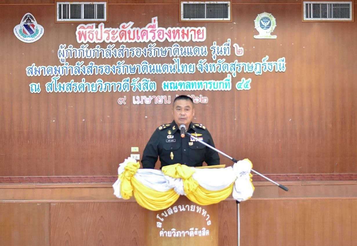 เป็นประธานพิธีมอบวุฒิบัตร และประดับเครื่องหมาย ผู้สำเร็จหลักสูตรผู้กำกับกำลังสำรองรักษาดินแดน ณ มทบ.๔๕ สุราษฎร์ธานี
