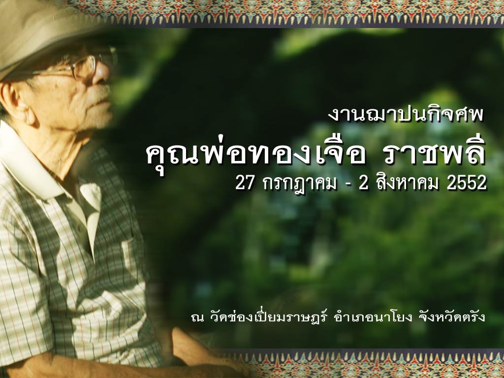 หมายกำหนดการ พิธีเจ้าปณาจิกศพท่าน เริ่มวันที่ 27 กรกฎาคม จนถึงวัที่ 2 สิงหาคม กลางคืนมีพิธีทางศาสนาสวดพระอภิธรรมทุกคืน วันที่ 2 สิงหาคมเวลา 15.00 น.ทำพิธีประชุมเพลิง ณ วัดช่องเปี่ยมราษฎร์ อ. นาโยง จ.ตรังกราบเรียนเพื่อเพื่อนทราบครับ