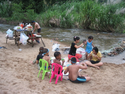 เด็กๆ สนุกกับการเล่นน้ำ(ออกจากเต็นก็ลงน้ำเลย)