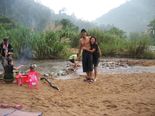 จุดตั้งแคมป์ เอารถลงไปถึงลำธารเลยครับ มีทั้งน้ำร้อนและน้ำเย็น