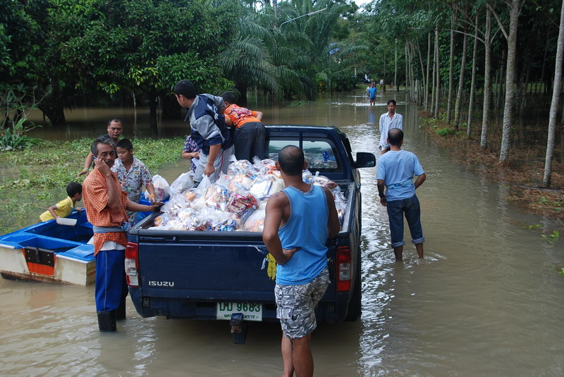 ภาพน้ำท่วม การแจกถุงยังชีพ