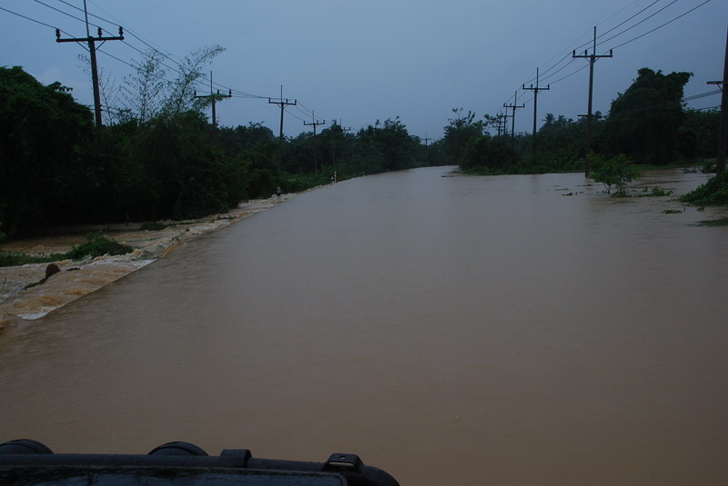 ถนนสายขนอมดอนสักท่วมยาวกว่า 3 กิโล รถเล็กผ่านไม่ได้