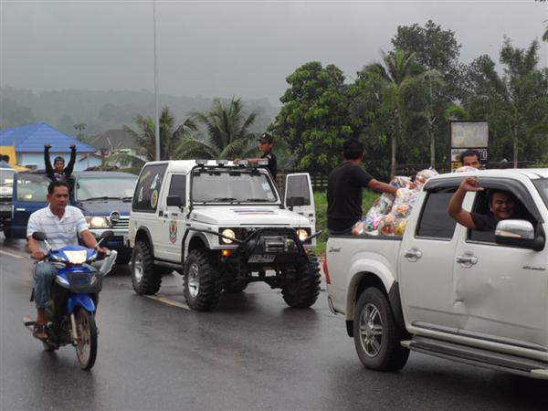 ก่อนต้องขออภัยก่อนลืมแจ้งรายละเอียด เนื่อง จากทางทม.เมืองระนองได้ตั้งจุดรับบริจาคสิ่งเพื่อช่วยเหลือผู้ประสบภัยเราได้รับสิ่ง ของเป็นจำนวนมากคนไทยไม่ทิ้งกันจริงๆ และคณะของเราก็ได้รับเกียติจาก ท่านผู้ว่าจ.ระนองมาทำพิธีเปิด ต้องขอขอบพระท่านเป็นอย่างสูง เก้าชั่วโมงในการเดินทาง เราหาย เหนื่อยจริงๆเพราะของที่นำมากได้ถึงกับมือชาวบ้านโดยตรง ทต.พนางตุงประสานงานได้เยี่ยมมาก และชาวบ้านผู้ประสบภัยก็เดือดร้อนจริงๆ ทางคณะของเราและชาวจ.ระนองขอเป็นกำลังใจให้ อย่าท้อนะสู้สู้กันต่อไป