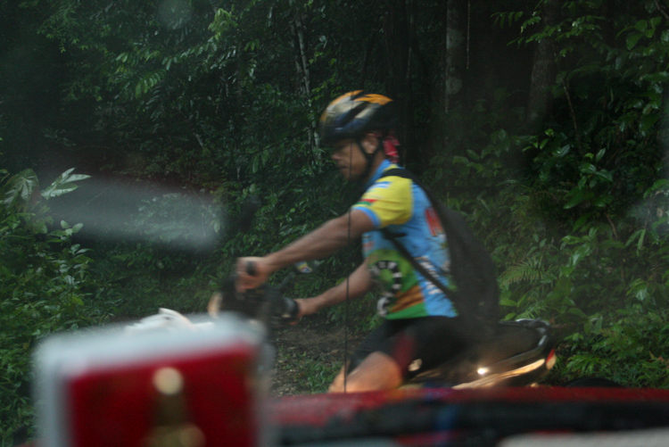 ไปต่อแบบช้าๆ พี่โจ้ก็ยังคงไปต่อด้วยสปิริต พี่คนนี้ที่เจอกันตอนทางขึ้น เขาปั่นขึ้นไปถึงข้างบนแล้วแต่ก็สงสัยว่าทำไมพวกเรายังไปไม่ถึงบนภูอีก อุตส่าห์ยืมมอไซค์เพื่อนลงมาดูพวกเรา