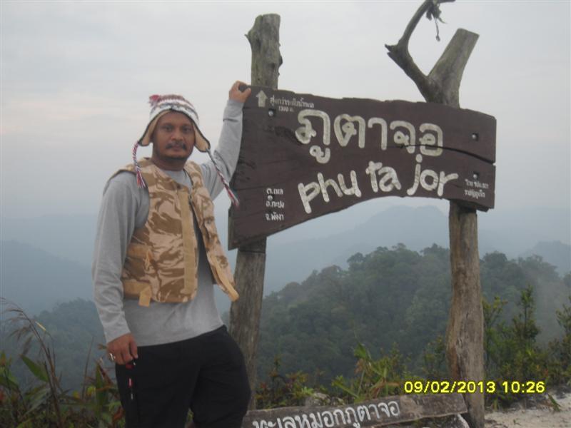 ขึ้นไปถ่ายกับป้ายภูตาจอ เสียดายที่ลมพัดเเรงไปหน่อยหมอกเลยไม่ค่อยมีครับ