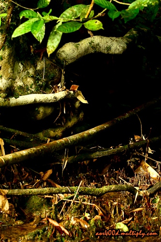 ต้นไม้ใหญ๋ข้างลำธาร แผ่รากลงมาดูดซับน้ำและคงส่งรากรุ่นใหม่ที่เพิ่งขยายความมั่นคงมา พวกนี้คงต้องการออกซิเจนหรือเพื่อสังเคราะห์แสงด้วยหรือไม่ (อันนี้ไม่ทราบนะ เรื่องข้อมูลทางชีวภาพอะไรพวกนี้เพราะไม่ได้เรียนมา ใครทราบก็ช่วยแบ่งปันข้อมูลกันหน่อย น้องอออยากมีความรู้จ้า)