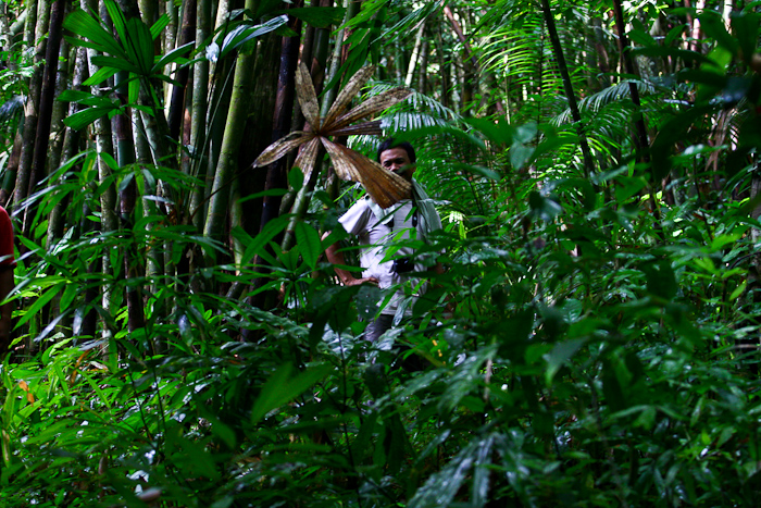 ทางเข้าสู่ซุ้มต้นไม้ที่เริ่มจะทึบแสงนิดหน่อย ซึ่งจะมืดกว่าด้านนอกที่ออเดินมาเล็กน้อย มีเถาวัลย์น้อยใหญ่ผสานกันไปมา สวยงามมากคะ แต่ออถ่ายมาไม่ได้เพราะด้วยลำธารเล็กๆนี้ ด้านบนมีเถาวัลย์ปกคลุมลงมาจนเกี่ยวหัวออได้ เลนส์เทเลจึงไม่สามารถเก็บภาพมาได้คะ ออพยายามเดินก้มต่ำเพราะกลัวงูเงี้ยวจะแขวนตัวห้อยโหน รอทักทายอออยู่อย่างในหนัง แต่ก็ไม่มีอะไรคะ อย่างว่า เสือกับสิงห์มักไม่อยู่ถ้ำเดียวกัน (เว้นแต่ทาก มันอยู่ได้กับสัตว์บกทุกประเภท)
