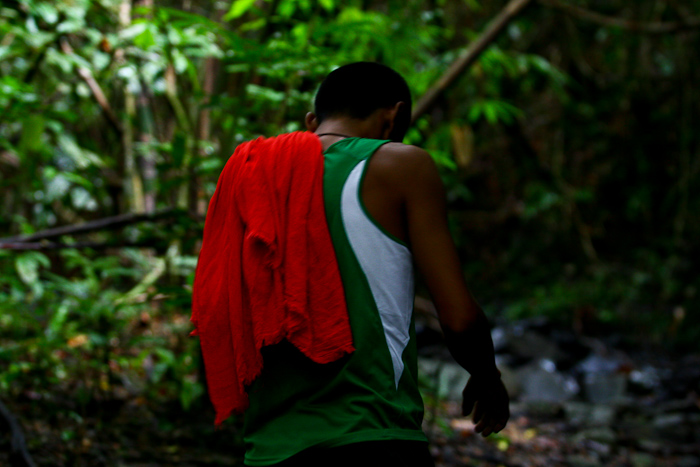 จากที่ปักหลักตรงนี้น่าจะเป็นครึ่งทางที่จะไปน้ำตก ออได้ยินเสียงคนเดียวคุยกันมาไกลๆอยู่บนฝั่งโน่นหละ คาดว่าน่าจะเป็นสามหนุ่มสามมุมแน่ๆ เห็นฌดินกันมาต้นไม้ไหวๆ ดีนะที่ส่งเสียงให้รู้บ้างว่าเป็นคน ไม่งั้นออคง ห้อยอาจารย์โกยวิ่งกลับไปแล้ว ออเองตอนนั้นกำลังกลั้นหายใจเพื่อถ่ายแมลงปอแบบนิ่งๆ ใจก็คิดนะว่าพวกเขาคงมาตามหาเราแน่ๆเลย เดี๋ยวคงตะโกนเรียกเราแน่ๆ แต่....เดินหัวร่อต่อกระซิกกัน ไม่มีทีท่าเป็นห่วงเป็นใยอะไรกับเรา คือดูแล้วเหมือนเราแปลกแยกต่อกัน ไม่มีใครมองเห็นออ ออเองก็นั่งแช่น้ำมองพวกเขาเดินผ่านไปอย่างช้าๆอยู่ห่างๆอย่างห่วงๆ ออรู้ว่าทำไมถึงรีบเดินดุ่มๆ กลัวทากอะจิ5555555