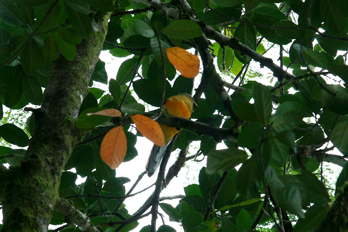 ลุงปรีชา เรียกออให้ไปดูนกขุนแผนท้องเหลือง หรือท้องส้มนี่หละคะ จำชื่อที่ถูกต้องไม่ได้ เจ้าตัวนี้มาเกาะข้างๆที่พักของพี่ๆเจ้าหน้าที่เลย ท้องสีเหลืองเข้ม ลุงหัวหน้าปรีชาบอกว่า ตัวนี้ยังเป็นโสด ไม่มีแฟน เพราะถ้ามีแฟนเขาจะพาแฟนเขามาด้วย ตอนแรกออก็จินตนาการไปว่า คงต้องเจ้าชู้แบบว่า มีแฟนหลายๆคนแล้วพามาเที่ยวด้วยกันหมด เราก็คิดป้ายสีให้นกได้ด้วยเน๊อะ