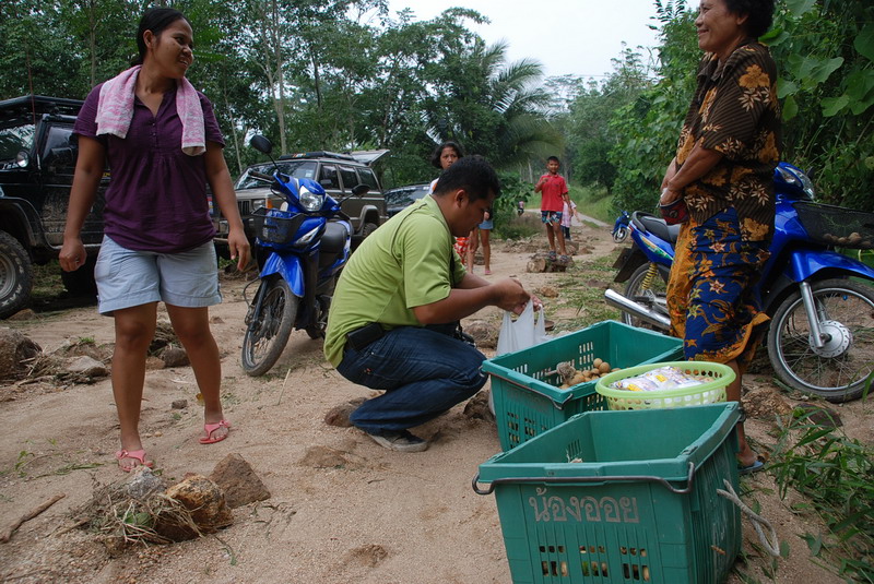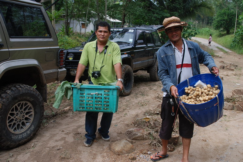 แล้วเราก็ลงมาเจอ ลุงกับป้าขึ้นมาเก็บลางสาดที่สวนแต่เอาลงไปไม่ได้ เลยต้องช่วยบรรทุกลางสาดลงไป
