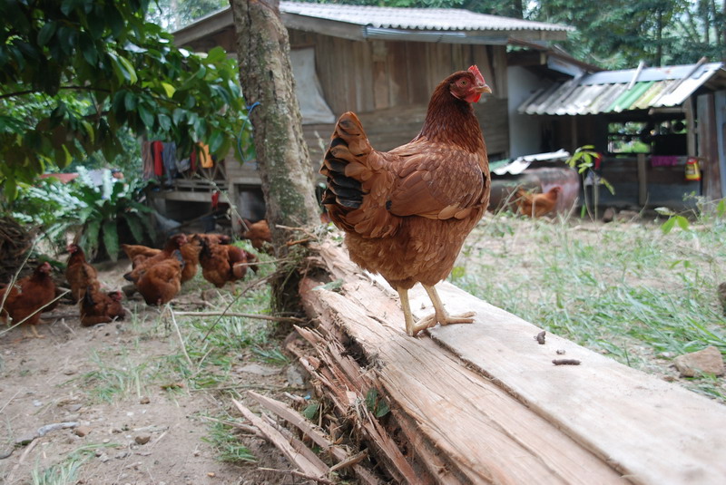 ไม้ต้นที่ไก่ยืนอยู่ยาวประมาณ 10 กว่าเมตร มาติดต้นยางต้นสุดท้ายไม่งั้นบ้านหลังที่เห็น ราบแน่ ในบ้านมีคนอยู่ 4คน