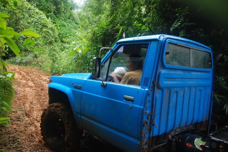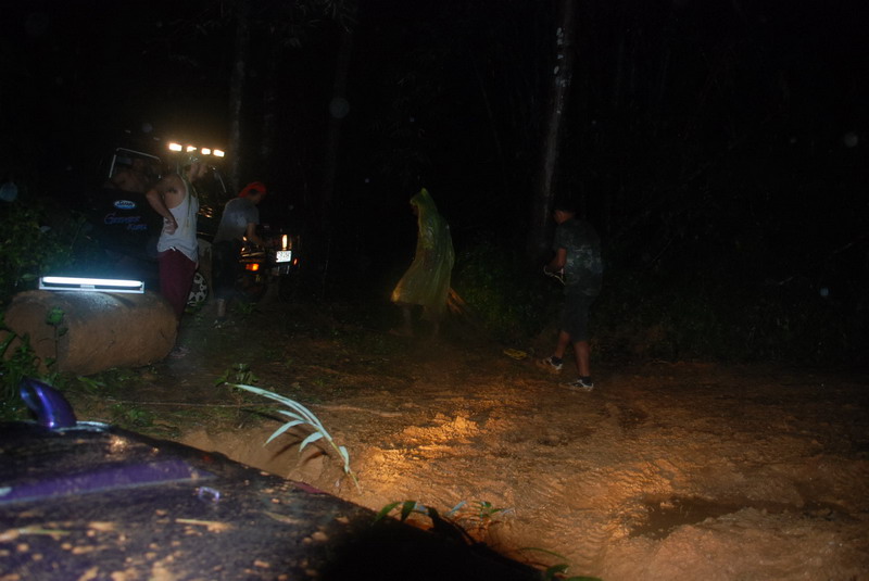 สุดท้ายพอขึ้นเนินนี้ได้ทุกคัน........ก็ไปเจอคลองซึ่งวัดระดับน้ำแล้วท่วมหัว.......ทางทีมงานเลยตัดสินใจกลับว่าจะลงไปนอนที่ที่ทำการอุทยาน ...........แต่ขากลับก็ต้องลงเนินที่เพิ่งขึ้นมาเมื่อกี้แต่ระดับน้ำถึงกระโปรงหน้ารถแล้วครับ ตอนนี้เอารถว่ายน้ำข้ามาผมไม่ได้ถ่ายเลยครับ เพราะมัวแต่วิดน้พในรถอยู่