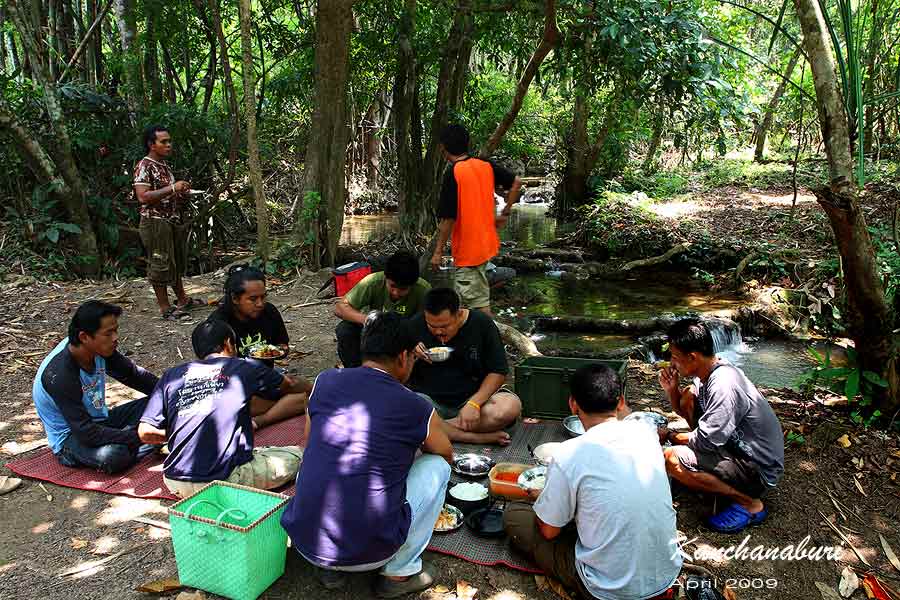 พักกินข้าวมื้อเที่ยงกัน ข้างน้ำตก