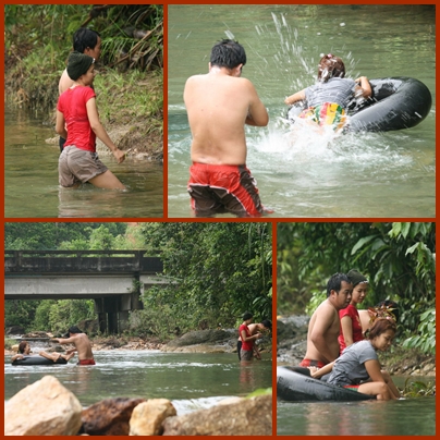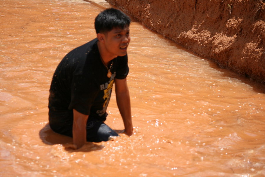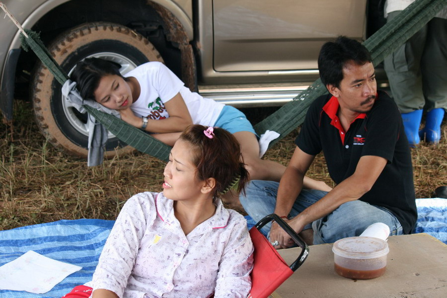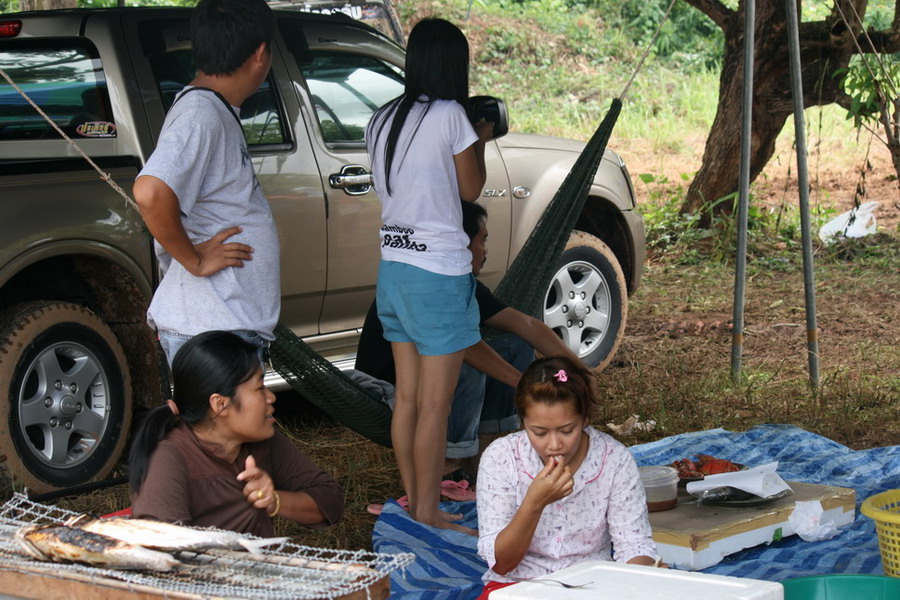 เย็นวันเสาร์ออกจากสนามแข่งขัน ก็มีคุณปิโย รอนำทางเพื่อไปยังจุดกางเต็นท์ที่บ้านแก บรรยกาศดีมากติดริมคลองโดยมีพี่ธานีกับพี่ไก่ระนองมาส่งด้วย แต่แกทั้งสองก็ขอตัวกลับก่อนเพราะทิ้งพวกไว้ที่สนามอีก 1คน คุณปิโยและทีมงานใจดีจริงๆ ถึงขนาดเอารถเบคโฮปรับพิ้นที่ให้เลยคิดดู ใช้เวลาประมาณ 1 ชั่วโมงในการเตรียมสถานที่จนเป็นที่เรียบร้อย ระหว่างนั้นได้ให้ น้องอ๊อด SRT25 ออกไปตลาดเพื่อซื้อเสบียง ขณะที่หน่วยเสบียงยังมาไม่ถึง คุณปิโยได้เอาทั้งอาหาร เครื่องดื่ม บ้านเราว่า ก้าลุยเสียเหม็ดนิ มานั่งกินด้วยกันที่สถานที่กางเต็นท์ กว่าหน่วยเสบียงของผมจะมาถึง ทางเราหมดไปขวดกว่าแล้วครับพี่น้องครับ ซักสี่ทุ่มเห็นจะได้ พี่ไก่ พี่ธานี ผู้ใหญ่บ้าน ม.2กับเพื่อนแกอีกคนไม่ได้ถามชื่อ เข้ามาสมทบ พูดคุยกันอย่างสนุกสนาน คุยกันหลายเรื่องมาก แต่จำได้แม่นๆก็คือเรื่องผี ครับ บรรยากาศเริ่มเงียบ อากาศเริ่มเย็น ที่สำคัญจุดกางเต็นท์คนละฝั่งคลองกับวัด อากาศเย็นมัยเหงื่อเริ่มออก ชักวังเวงเข้าไปทุกที พอเที่ยงคืนพี่นพ ระนอง เข้ามาเพิ่มอีกคนรู้สึกอบอุ่นอีกนิด แต่รวมๆก็ยังวังเวงอยู่ นั่งกินไป ดื่มไป เล่าเรื่องผีไป จนเวลา ตีสอง ทุกคนเห็นว่าดึกแล้ว(ไม่มีใครค้านซักคน) จึงขอตัวแยกย้ายกันกลับ แต่ไม่ทราบน่ะว่ากลับไปไหนกัน เอาเป็นว่ากลับออกไปจากที่ผมกางเต็นท์ จ ผมจึงเข้านอน จนเช้าได้ยินแปลกๆคล้ายอะรัยเล่นน้ำอยู่ในคลอง หน้าเต็นท์ที่ผมนอนอยู่ ลุกขึ้นมาดู(ยังเมาขี้ตาอยู่)นึกว่าพะยูนเกยตื้น เอ...นี่มันคลองนี่นา ไม่น่าจะมีพะยูรน่ะ ...ตั้งสติดูใหม่อีกรอบ ที่ไหนได้ อาว...ท่าน SRT 25 กับ นายก้อง คนถาทาง พร้อม ผบ.นี่เอง เล่นเอาตกอกตกใจหมดเลย