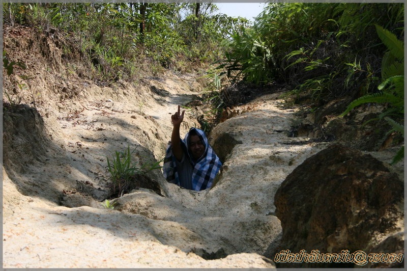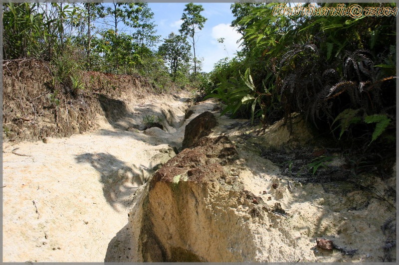 เนื่องจากฝนตกหนัก ทำให้เส้นทางเป็นร่องน้ำลึกๆทั้งเพ ...