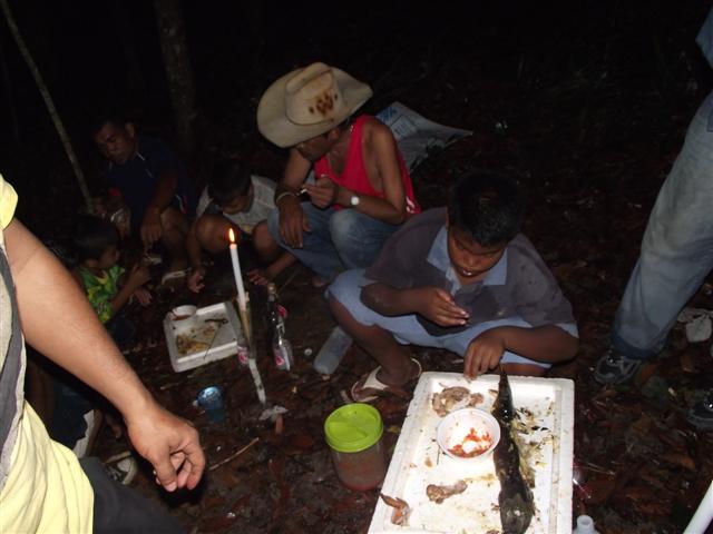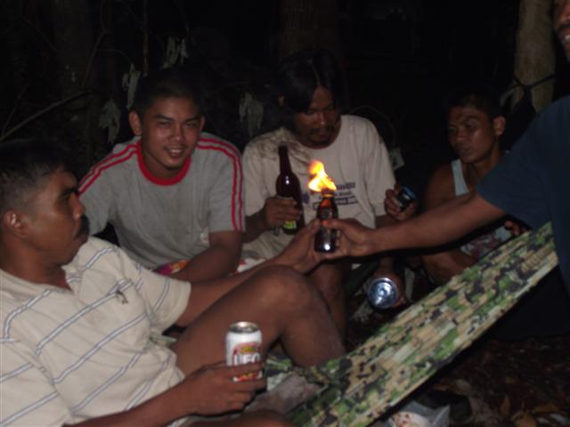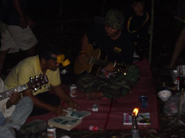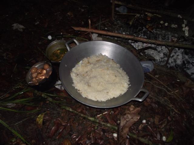 ถึงยอดเขาพอมืดๆ ทำของกิน จุดไฟ ตั้งเต้น