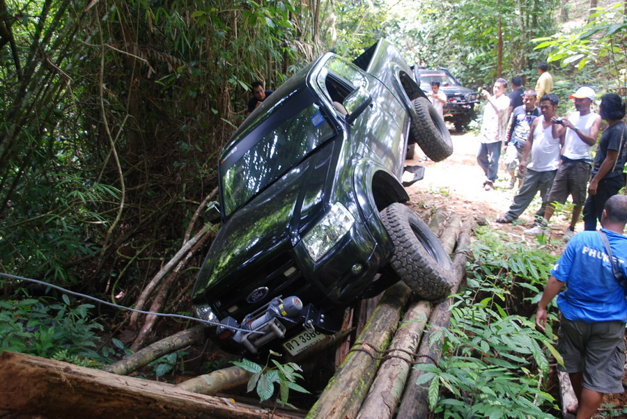 ขึ้นมาได้เนินเดียว เจอสะพานแรก ผ่านไปได้สอวคัน พี่เม้งกับพี่หนึ่ง ท่านกำนัน คันที่สามก็เป็นอย่างที่เห็น
