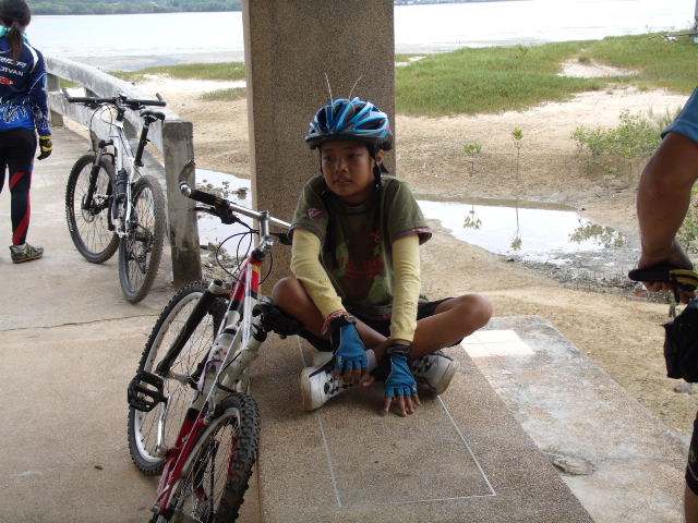 หนูน้อยนั่งพักผ่อนก่อนกลับ