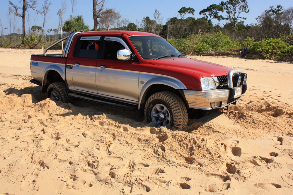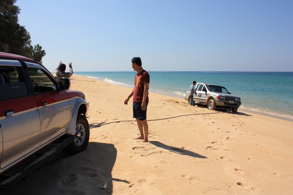 หน้ายักษ์เมื่อวันนั้น ลากรถอุทยานติดทรายหนีน้ำขึ้น