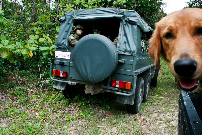 ขับมาซักพักเจอรถทหาร ตอนแรกเข้าใจว่าแก๊งค์ออฟโรดที่ไหน ที่แท้ก็ขาใหญ่ตัวจริงเขามาซุ่มซ้อมรบกันนี่เอง (มั่วนิ่มข้อมูลเอาเอง คริคริ )