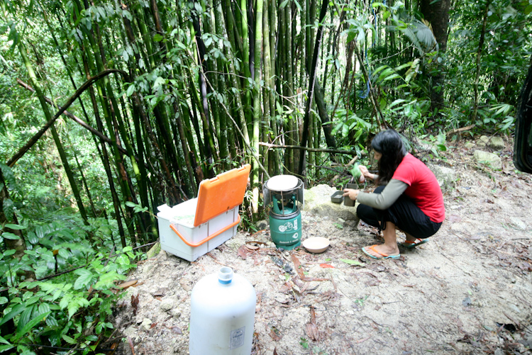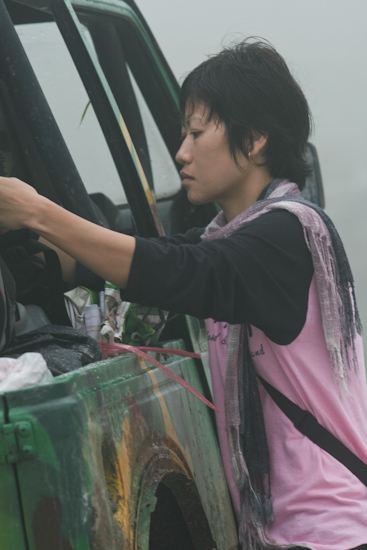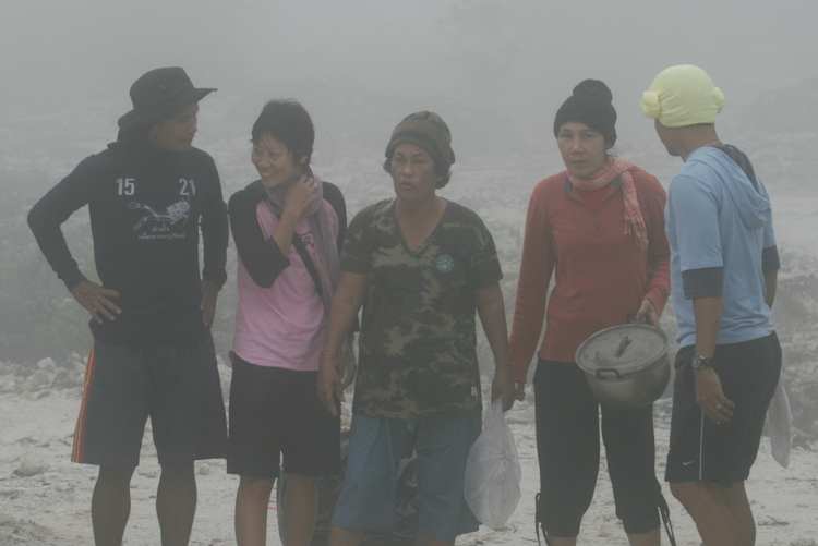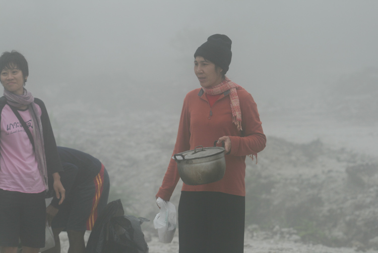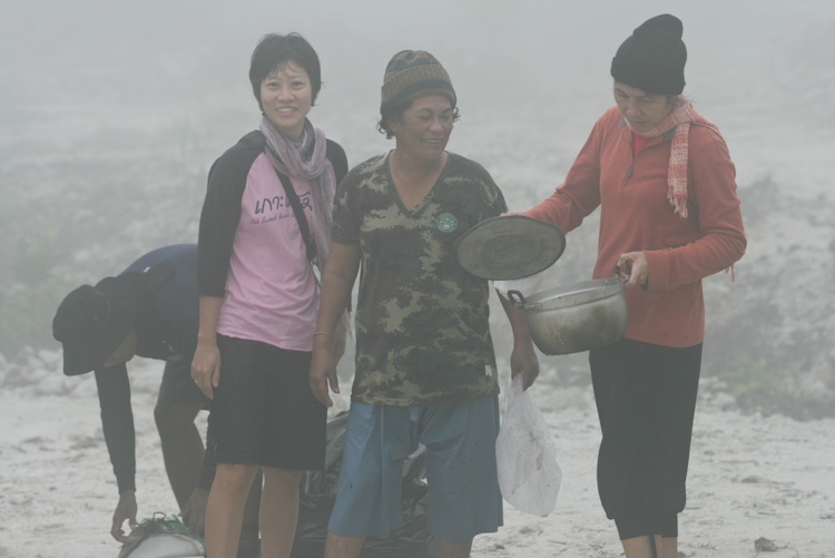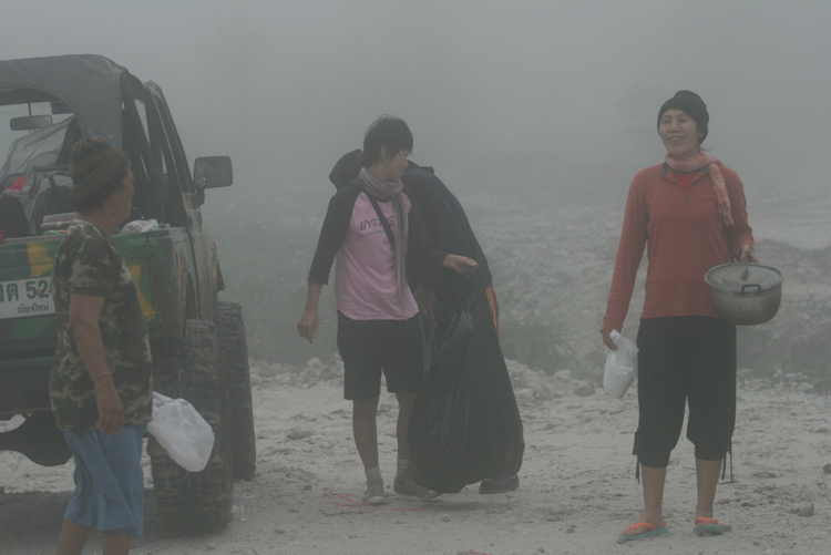 นียืนหนาวเลย .. เราพบกันโดยบังเอิญคะ เพราะนีกับเล็กปั่นจักรยานผ่านหน้าบ้านออบ่อย ออก็มองพวกเขาอยู่เกือบปีได้แล้ว ตอนนั้นออมองแล้วยังอิจฉาอออยากปั่นบ้างแต่ด้วยที่เมื่อก่อนออปั่นจักรยานออกกำลังกายบ่อยๆและมีหมาตัวนึงที่ร้านขายอุปกรณ์ก่อสร้างเขาเพิ่งย้ายมาใหม่ มีหมาสีดำตัวใหญ่มันไม่คุ้นกะจักรยาน มันไล่ออจนออเกือบเสียหลักล้ม ตั้งแต่นั้นมาออเลยเลิกปั่นไปเลย เลิกปั่นเพราะหมาตัวเดียวจริงๆ ....ตอนหลังออมาเปิดร้านกาแฟ นีกับเล็กก็แวะมากินกาแฟที่ร้าน และไปเดินป๊ะกันที่ตลาดบ่อยครั้ง ครั้งล่าสุดไปเจอกัน และนั่นเป็นครั้งแรกที่เราได้คุยกันยาว ออเลยชวนมาเที่ยวภูตาจอซะและก็ได้รู้จักชื่อกันวันนั้นเอง และคาดว่าต่อไปคงได้เที่ยวด้วยกันอีกบ่อยๆนะจ๊ะ เห็นนีสไตล์นี้รู้เลยอารมณ์เดียวกะออแน่ๆ อยากชวนแบกเป้เที่ยวสไตล์สาวๆซะจริงๆเลย
