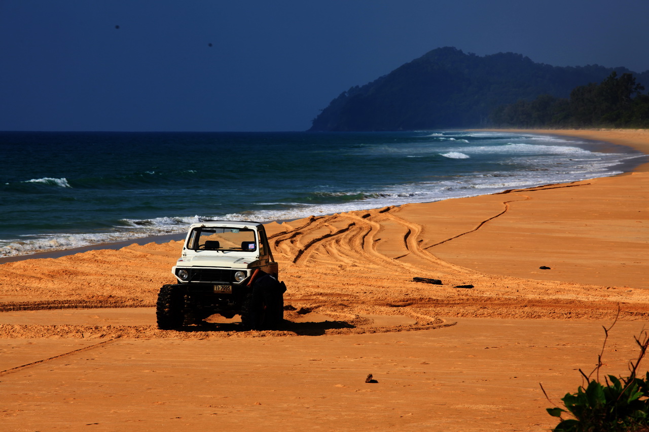 ไหนๆลงรูปแล้ว ขอโม้อีกนิด หาดทับตะวันหรือหาดทานตะวัน อยู่ติดกะหาดบางสักคะ ภาพนี้ได้มาตอนฝนตก เดินกางร่มไปถ่ายรูปคนเดียวหลายท่านคงเคยเห็น และอีกหลายท่านคงยังไม่ได้เห็น ออเอาภาพมาให้ชมเพียงเพื่อจะบอกว่า บ้านเกิดออสวยงามขนาดไหน แต่พี่ๆไปคงไม่เจอแบบนี้ อิอิ เพราะภาพนี้ออไปรอฝน รอแสง รอจังหวะอยู่หลายชั่วโมง เหมาะสำหรับคนชื่นชอบการถ่ายภาพเท่านั้น บนชายหาดจะเต็มไปด้วยเปลือกหอย แต่เดี๋ยวนี้เหลือน้อยเพราะ พวกมือบอนช่วยหยิบกันไปคนละถุง2ถุง ภายในเวลาแค่7ปีที่ออเฝ้าวนเวียนที่หาดนี้ เห็นความเปลี่ยนแปลงได้ชัดว่า "ไม่เหลือหรอ" พูดเรื่องนี้แล้ว ใจมันสะอื้นจุกอก อย่างว่านะคะ เหรียญมี2ด้าน ออแค่นำเสนอไปเรื่อยเปื่อย ไปที่ไหนก็พูดเรื่องนี้ เผื่อซักวันจะมีใครได้ยินเสียงของออแล้วเชิญ(ต้องเชิญด้วยนะ)เชิญออไปพูดคุยแลกเปลี่ยนเรื่องการอนุรักษ์ทรัพยากรท้องถิ่นตามแหล่งท่องเที่ยว ออยินดีและพร้อมเสมอคะ