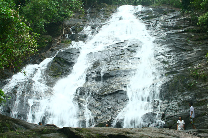 ต่อมาก็ไปไหนดีน๊า น้ำตกมั้ย..น้ำตกลำปีอย่าไป เพราะมันคือน้ำตกมหาชน ไปแย่งโอโซนกะชาวบ้านเค้า เราต้องไปน้ำตกโตนไพร พี่ออกจากเขาหลักมาก็ประมาณ 15 กิโลเมตรได้นะคะ อยู่ตรงกันข้ามกับแขวงการทางท้ายเหมือง มาจากเขาหลักก็ซ้ายมือ (ขับมาเรื่อยๆก็คงเห็นป้ายนะคะ) เลี้ยวซ้ายเข้าไประยะทางประมาณ 7กิโล (แม้ว) แต่ไม่ต้องสนใจ ขับตรงไปเรื่อยๆ สุดปลายทางจะเป็นหน่วยรักษาพันธุ์สัตว์ป่า หรือหน่วยพิทักษ์ป่านี่หละคะ ของน้ำตกโตนไพร จอดรถไว้ด้านนอกถ้าจะทานข้าวปลาอะไรก็ทานก่อนที่ด้านหน้าหน่วยเพราะมีร่วมไม้ริมน้ำให้นั่งร่มรื่น ห้องน้ำสะอาด ก็เตรียมเป้ใบย่อม ใส่ขนมกะน้ำเดินเท้าเข้าสู่น้ำตก ระยะทาง 700เมตร เดินชมนกชมไม้ไปเรื่อยๆ เด็กๆก็เดินได้ ทางเดินสะดวกสบาย มีพรรณไม้มากมายคะ จะเป็นน้ำตกขนาดใหญ่ เด็กๆเห็นแล้วจะกรี๊ด เพราะลานด้านหน้าน้ำตก น้ำตื้นแค่เข่า แต่ถ่ายรูปมาแล้วดูไม่ค่อยใหญ่เพราะออถ่ายจากมุมล่าง แหงนขึ้นไปด้านบน ภาพอาจจะไม่สวยนัก แต่เอามาดูพอให้เป็นตัวเลือก (ของจริงสวยกว่ามาก หลายคนที่ออหลอกให้ไป กลับมายืนยันเป็นเสียงเดียว) ขี้โม้อย่างแรงเลยเรา