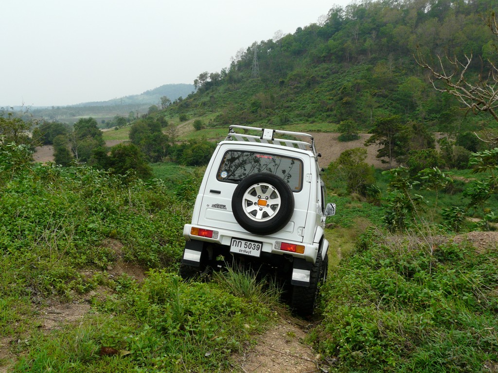 แล้วก็ลงมาจากเขาไปวิ่งทางออฟโรด แบบที่ว่าสวนกันไม่ได้เลย สุดทางก็เป็นลานดินแบบนี้ครับ