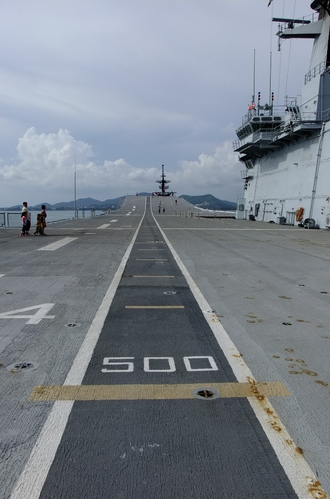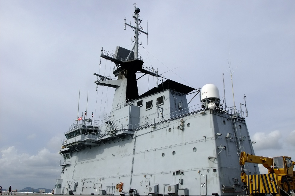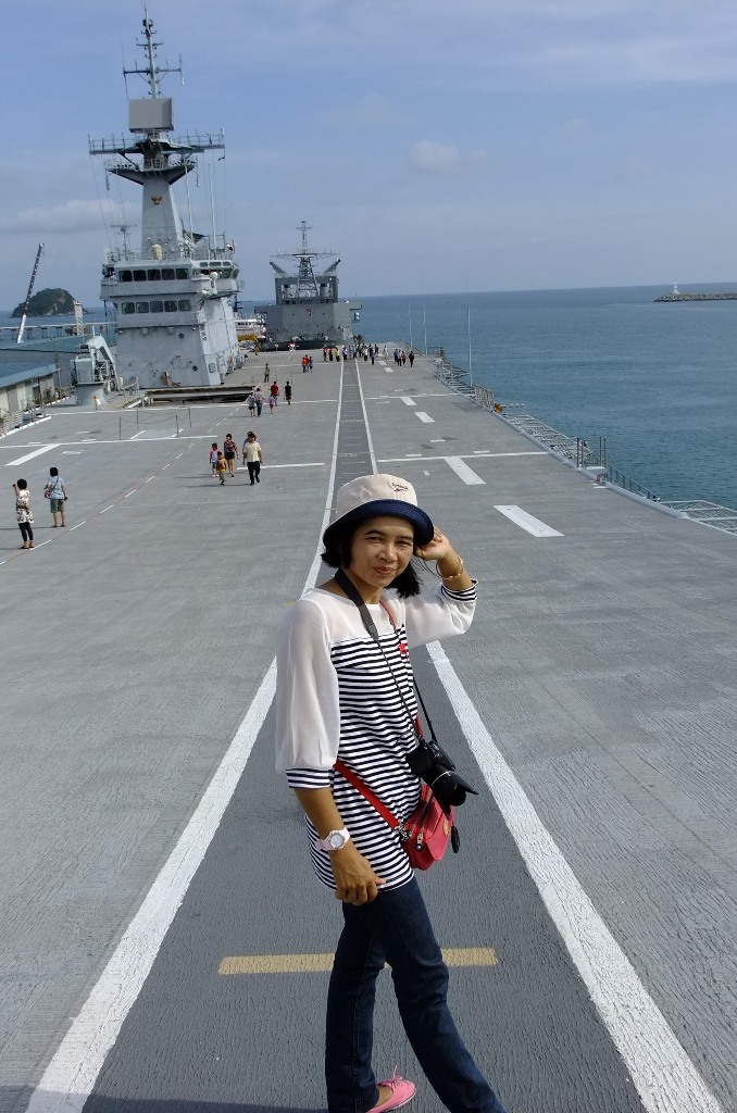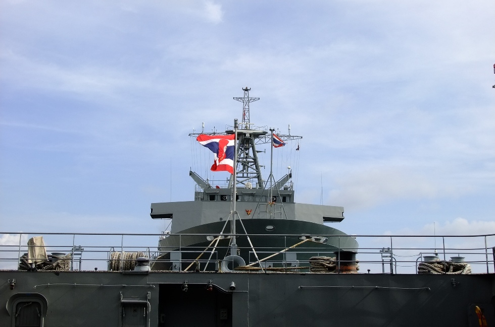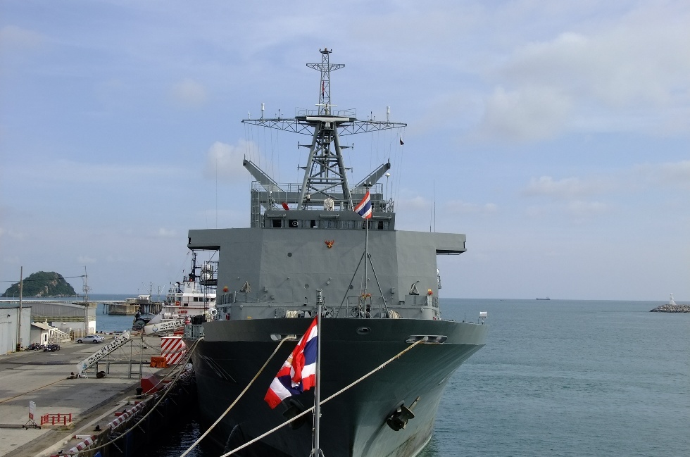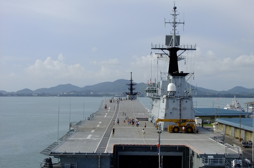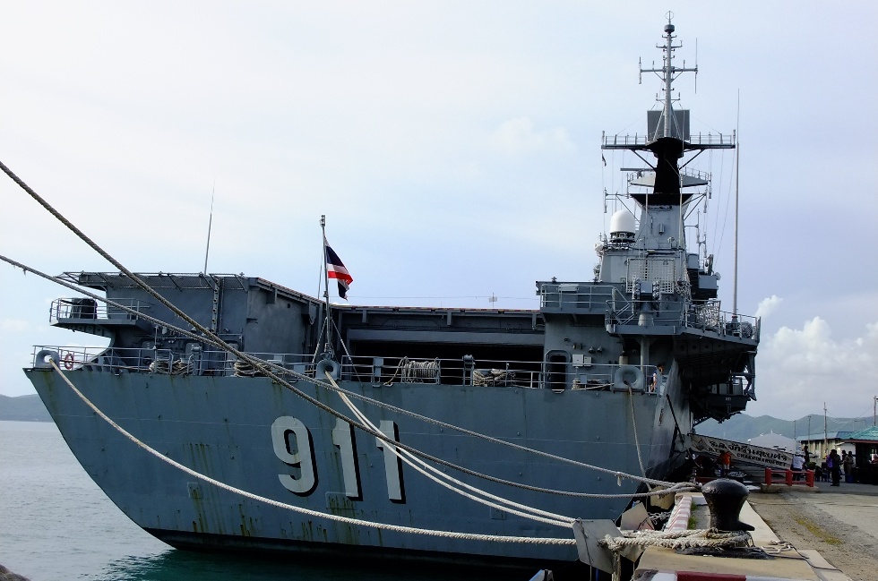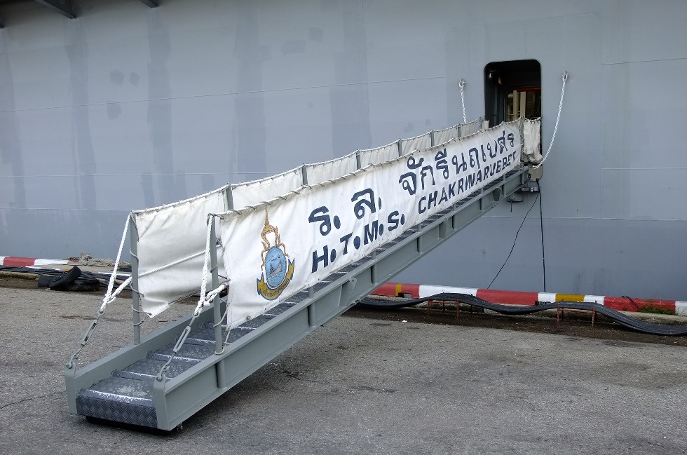 จอดอยู่ติดกันมองลงไปเห็นเรือรบหลวงจักรีนฤเบศร