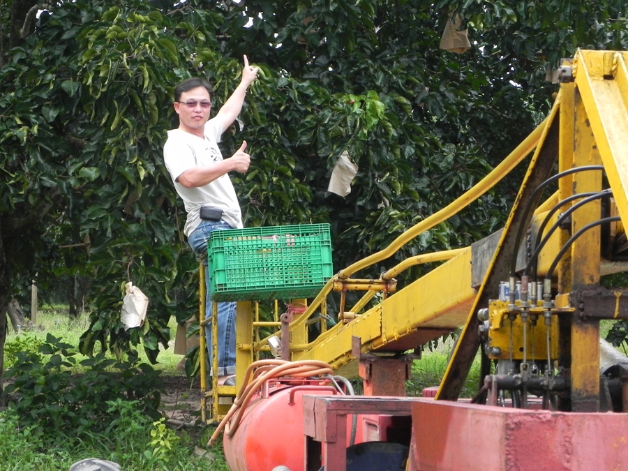 น้า...น้า...อันนี้เป็นรถกระเช้า...ไว้สำหรับเก็บกะท้อน...มีไฮดรอลิก...ยกขึ้น-ลง ได้ง่ะน้า....งุงิงุงิ