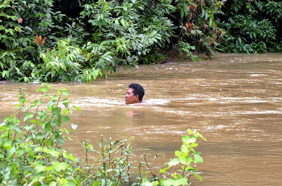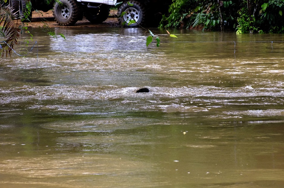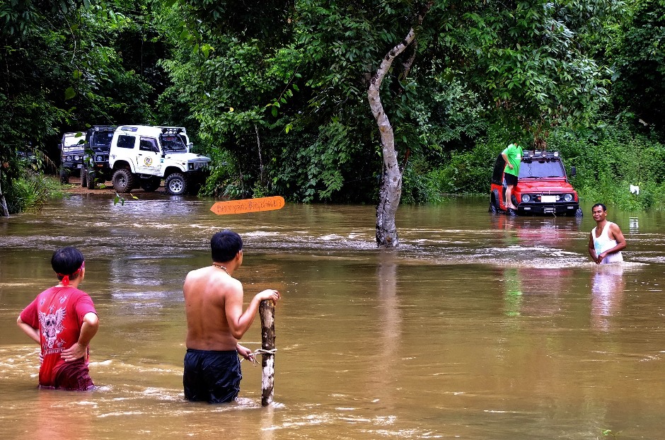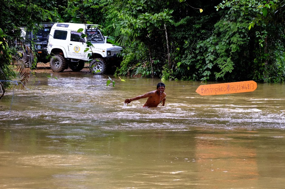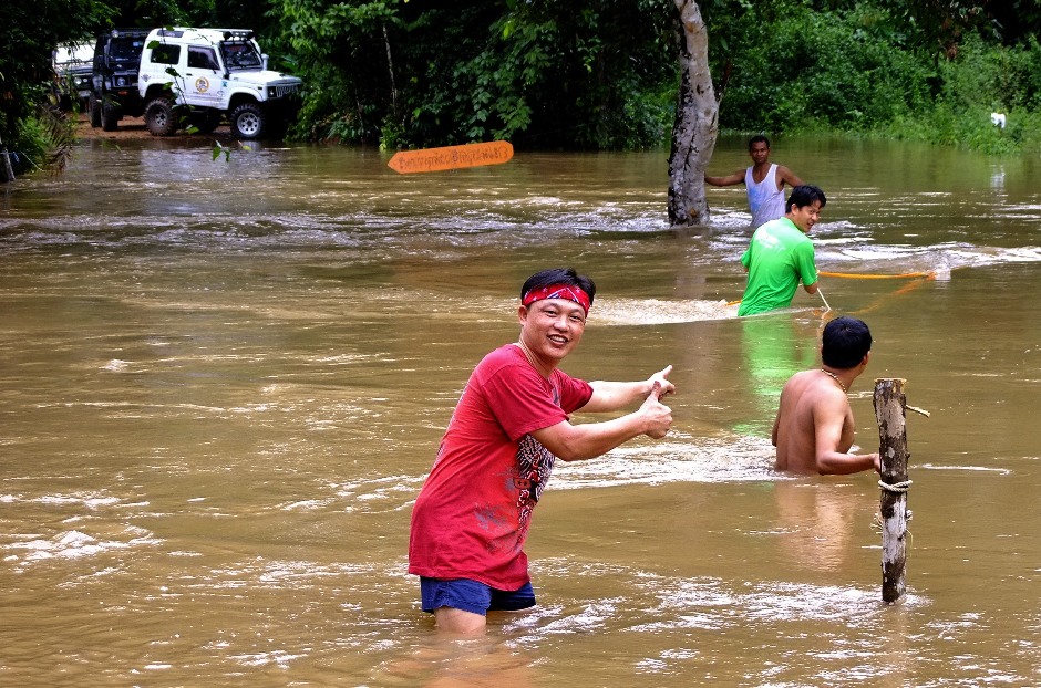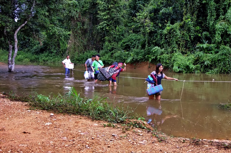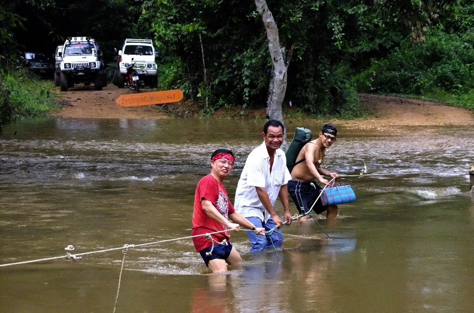 เจ้าหน้าที่ต้องมาช่วย.ต้องไปว่ายน้ำข้ามจากในป่าอีกฝั่งมาหาหา..ตรงกลางทางไม่สามารถฝ่าแรงน้ำมาได้ถ้าไม่มีเชือก