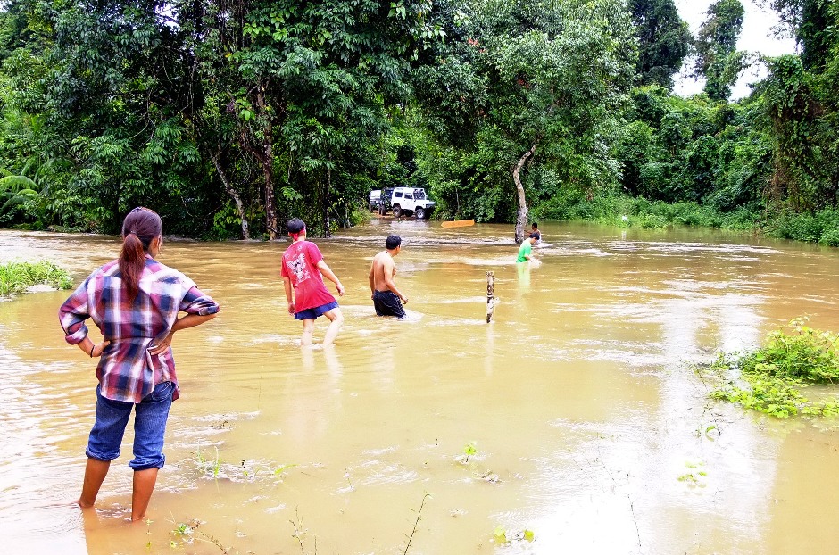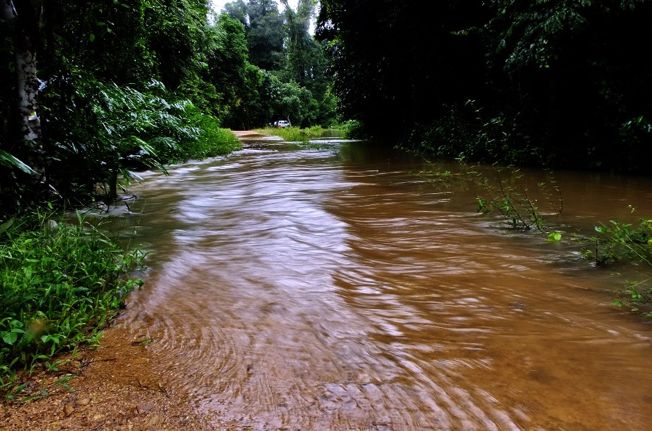 น้ำท่วมทางเป็นบริเวณกว้าง....หาทางข้ามยาก..น้ำสูงและแรง