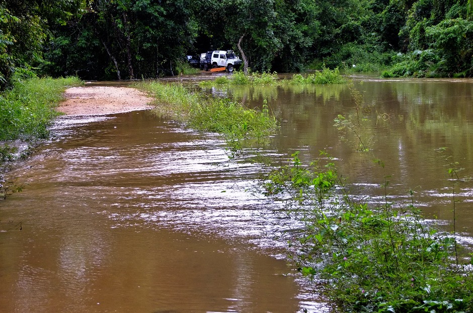 เจ้าหน้าที่บอกว่า..ถ้าฝนตกมาอีก..น้ำจะสูงกว่านี้..อาจจะต้องติดอยู่ในนี้อีก1-2วัน..เลยตกลงกันเราจะลุยน้ำออกไปกัน