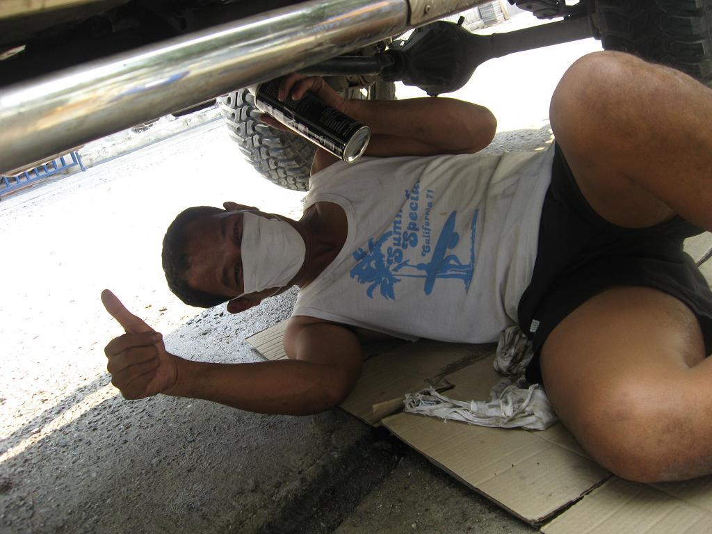 น้าน้อย..ต้องเอาสีดำด้านพ่นบางๆทับอีกที..ไม่งั้นเวลาโดนน้ำมันสีกันสนิมมันจะละลายออกมาครับ