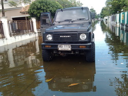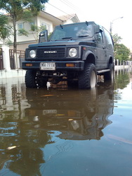 ผมขับลุยน้ำ น้ำเข้ามาในห้องโดยสายเกือบถึงหัวเข่า ทั้งที่ไทรน้อยและที่บางใหญ่ คาริเบี้ยน นี้สุดยอดจริงๆ ไม่เคยดับให้อายเลยละ สิบอกให๋