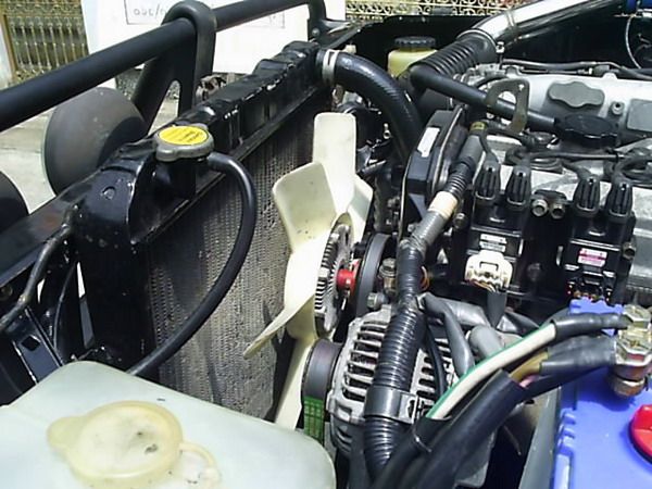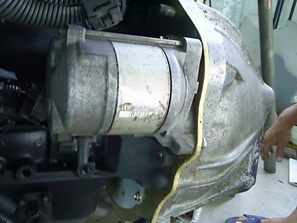 ส่วนในรูปนี้จะเห็นว่า ตำแหน่งของไดสตาร์ทของเครื่องจะอยู่ในตำแหน่งที่ไม่ตรงกับของหัวหมูครับ จะสูงต่ำแตกต่างกันอยู่พอสมควร แต่อย่างที่บอกไปก็คือ ห้องไดสตาร์ืทของหัวหมูไดฮัทสุนี้ค่อนข้างลึกกว้างจึงทำให้ตำแหน่งที่เยื้องต่างกันอยู่ตรงจุดนี้ก็มีเนื้อที่พอสำหรับตำแหน่งที่ต่างกันครับ แต่ก็มีการเีจียรเสื้อหัวหมูด้านในออกไปบ้างเหมือนกันในส่วนที่คาดว่าน่าจะมีการติด เพราะไดสตาร์ทของเครื่อง 3RZ นี้จะเป็นไดสตาร์ทที่เวลาทำงานจะมีตัวเฟืองที่ดันออกมาเพื่อที่จะปั่นตัวฟลายวีล เลยอาจจะมีตำแหน่งที่อาจจะโดนก็เลยต้องเจียรแต่งเผื่อไว้ก่อนครับ