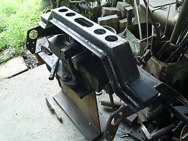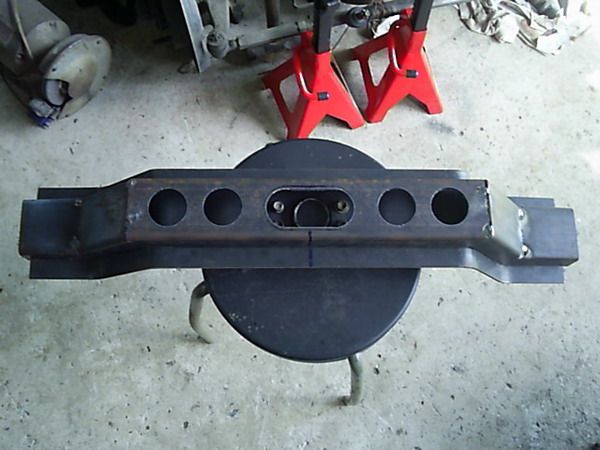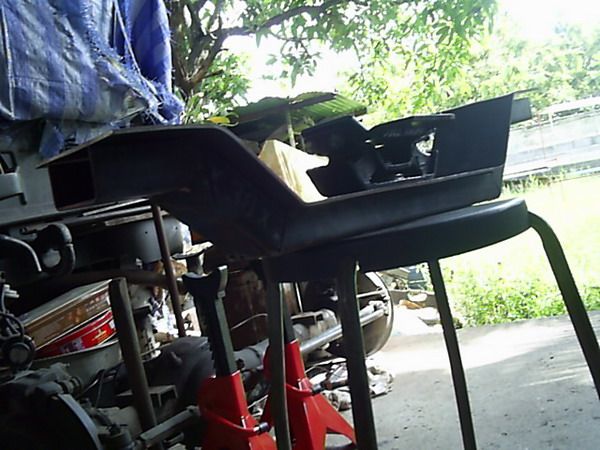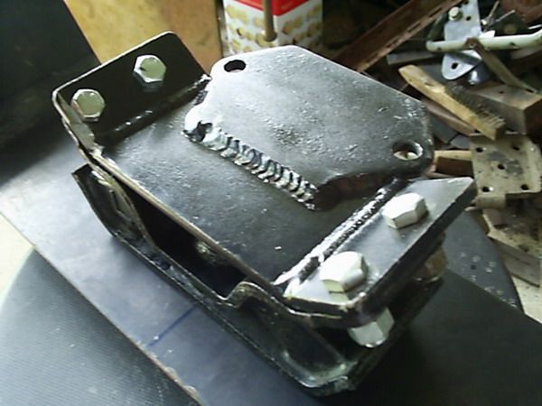 แต่ก่อนที่จะสร้างคานรับเกียร์ โดยปกติแล้วมันก็ต้องถูกยึดผ่านระบบลูกยางแท่นเกียร์ก่อน แล้วลูกยางแท่นเกียร์มันก็ไม่ได้มีมากับเกียร์ตัวนี้ หรือถึงแม้จะมีมามันก็ไม่อาจจะใช้ได้(รูปทรงของยางแท่นเกียร์ไดฮัทสุนี้จะมีลักษณะคล้ายๆกับยางแท่นเกียร์ของรถจี๊ปรุ่นเก่า) ซึ่งการออกแบบคานรับเกียร์จะมีปัญหาได้ เพราะโดยปกติแล้วผมจะสร้างคานรับเกียร์กับเกียร์รุ่นนี้ให้มีลักษณะเยื้องจากจุดยึดมาที่ด้านหลังของเกียร์อยู่พอสมควร เพื่อเป็นการออกแบบให้หลบแนวเพลาที่แทงไปยังคานหน้า คือพยายามสร้างให้มีลักษณะที่คล้ายๆกันกับคานเกียร์ของพวกตระกูลโตโยต้าแหละครับ