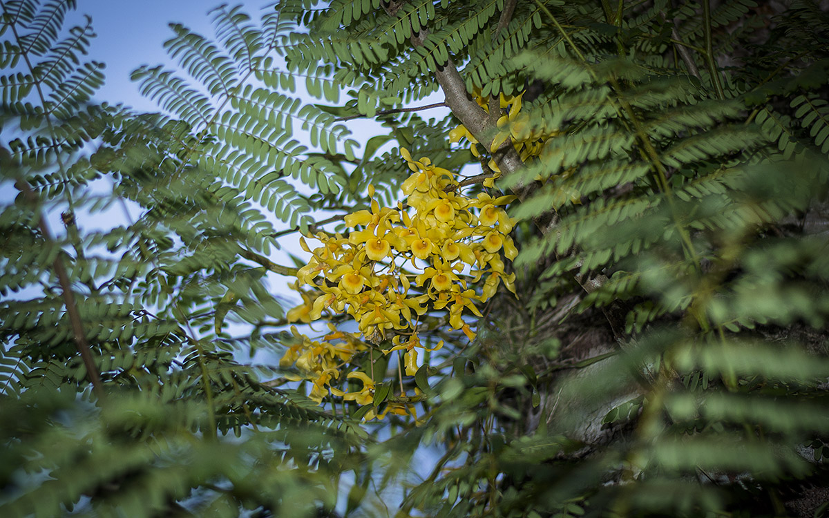มีคนโปรยดอกไม้สีเหลืองกับปักธูปตลอดเส้นทาง