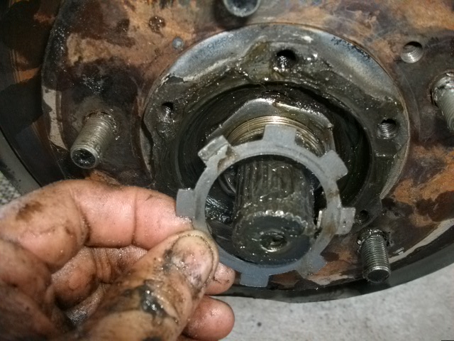 คำตอบที่ 4 ถอดฟรีล็อคหรือฝาครอบดุมออกแล้ว จะเห็นน็อตตัวใหญ่2ตัว จะมีเหล็กพับในและพับนอก กันน็อตคลาย ให้เอาไขควงแบนตอกออกซะ