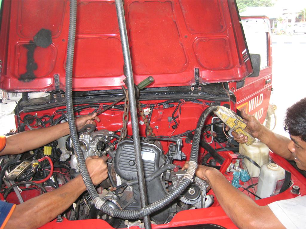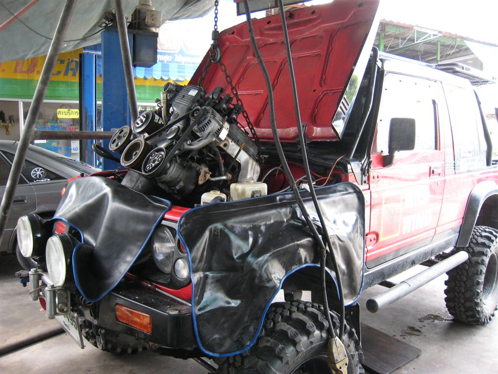รถผมใช้เวลาทำห้าวัน เพราะของเดิมวางเครื่องโตโยต้า 5K ขนาด 1500 CC ช่างแค่เอาเครื่องใหม่ลง เปลี่ยนแผงรังผึ้งหม้อน้ำ ไม่มีออยด์คูลเลอร์ เกียร์สโลว์อยู่ที่เดิม คิดค่าแรง 10,000 บาท ค่าเครื่อง 18,000 บาท เพิ่มค่าแผงรังผึ้งหม้อน้าอีก 3,500 บาท